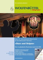 Erleben Sie Amerika mal von anderen Tönen! Am Sonntag, dem 27. März 2011, werden Sie herzlich in die Lindenhalle Wolfenbüttel zu einem musikalischen Erlebnis eingeladen. Um 11:00 Uhr beginnt das Konzert "Amerika »Stars and Stripes«".Organisiert wird das Konzert von den kaufmännischen Auszubildenden für Tourismus und Freizeit der BBS14 Hannover in Zusammenarbeit mit dem Stadtmarketing Wolfenbüttel und Opus 112 – dem sinfonischen Blasorchester der Berufsfeuerwehr Hannover unter der Leitung von Hugo Loosveld.