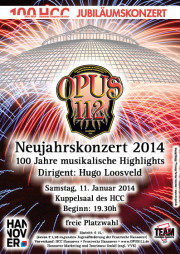 Das Neujahrskonzert 2014 fand im Kuppelsaal in Hannover statt. Wir freuen uns, dass wir das Jubiläumskonzert "100 Jahre HCC" spielen durften und damit das Festjahr zum 100-jährigen Jubliäum des HCC einläuten durften. Über 1000 Zuschauer hörten ein Programm mit Musik aus 100 Jahren Musikgeschichte. Wir begannen mit Songs von Robbie Williams beim Pop der heutigen Zeit und endeten natürlich mit dem Klassiker eines jeden Neujahrskonzerts - "An der schönen blauen Donau".