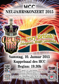Das Neujahrskonzert von OPUS112 fand in diesem Jahr am Samstag, den 10. Januar 2015 unter dem Motto "...very British!" im Kuppelsaal des HCC statt.