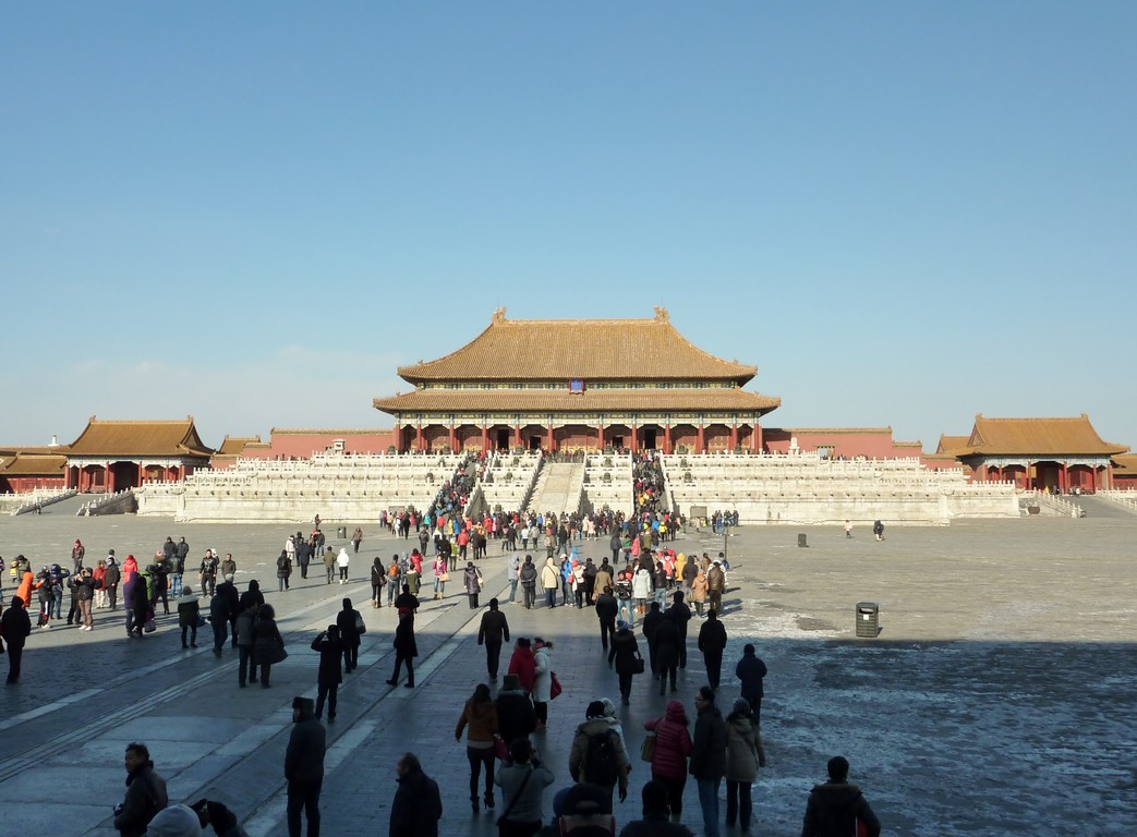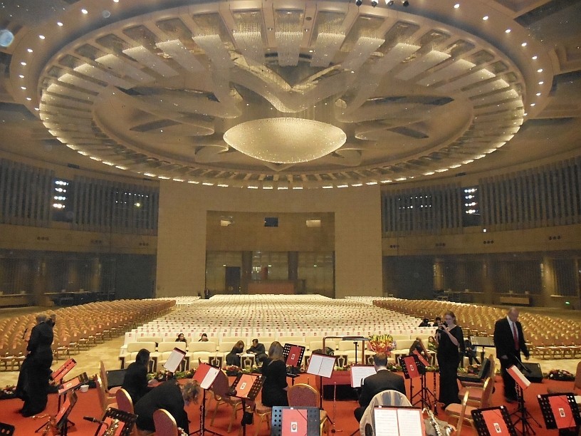 Früh morgens geht es mit dem Flieger nach Peking. Und während wir am Neujahrsmorgen vor dem Check-In-Schalter Schlange stehen, feiern unsere Familien daheim in Deutschland den Jahreswechsel. Unsere Wünsche werden erfüllt, und wir machen endlich einmal Sightseeing. Es herrscht zwar noch nicht der schlimme Smog, wie er die Stadt ein paar Wochen später einhüllen sollte, dafür ist es aber ganz schön kalt und äußerst windig. So laufen wir dick eingepackt durch die verbotene Stadt, den Sitz der chinesischen Kaiser. Anschließend ist noch Shopping angesagt, und nachdem sich das halbe Orchester mit neuen Kopfhörern ausgestattet hat, fahren wir ins Poly Theater. Nach dem Culture and Arts Centre in Suzhou ist dies der zweite Saal, der uns wirklich umhaut. Deswegen wird an diesem Abend auch, trotz leichter Nachwehen von Silvester, hochkonzentriert musiziert! Es sind sogar ein paar in Peking wohnhafte Europäer im Saal, denen wir mit unserem Neujahrskonzert ein wenig Heimatgefühl nach Fernost bringen können.