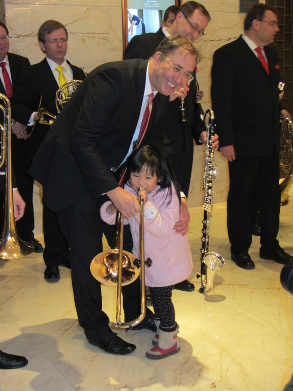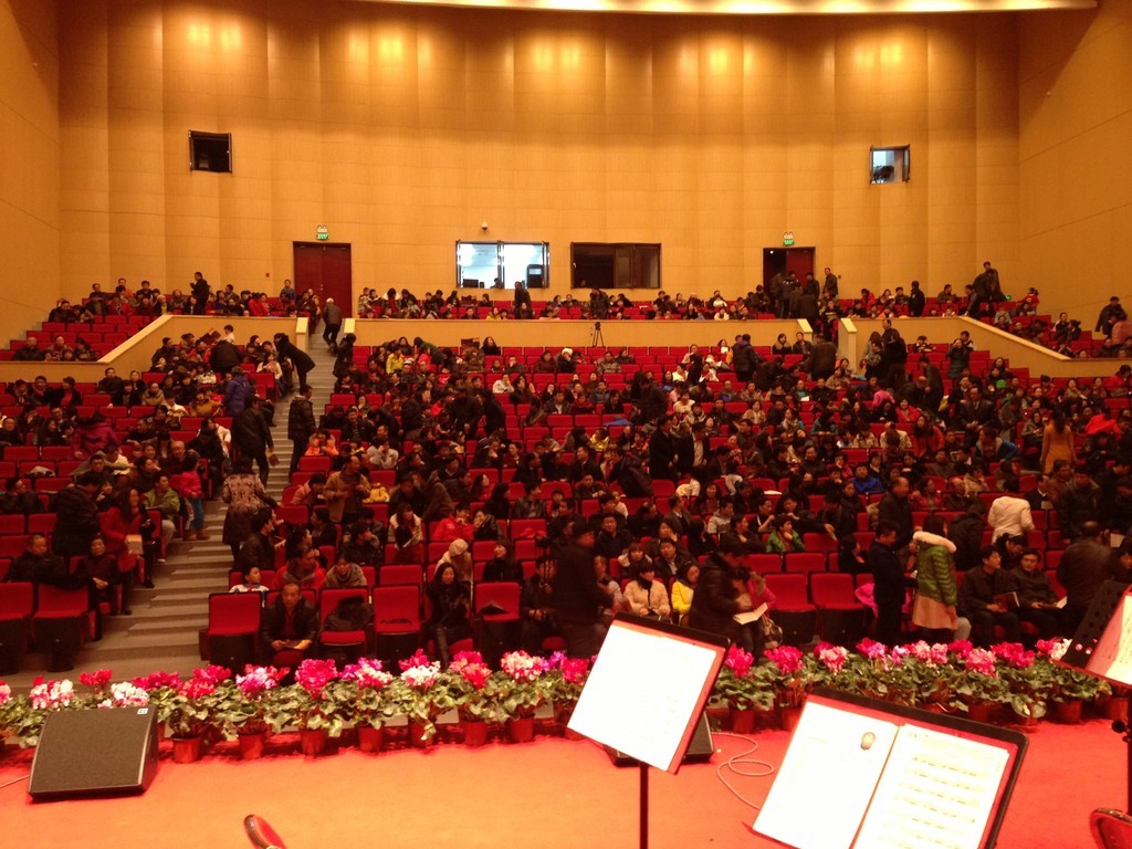 Skurril dann der Konzertbeginn: Gerade als wir uns zu wundern beginnen, weil kaum ein Zuhörer zu sehen ist, teilt uns der Veranstalter mit, dass wir den Konzertbeginn um 25 Minuten verschieben müssten. In Taiyuan herrscht ein riesiges Verkehrschaos und unser Publikum steckt schlicht und einfach im Stau. Tatsächlich: Als wir die Bühne mit entsprechender Verspätung betreten, ist das Haus voll! Zum Ende des Konzerts lässt das Publikum bei uns regelrecht ein wenig Heimatgefühl aufkommen, als es uns mit Hilfe des chinesischen Moderatoren-Duos auf Deutsch ein "Frohes neues Jahr" wünscht!