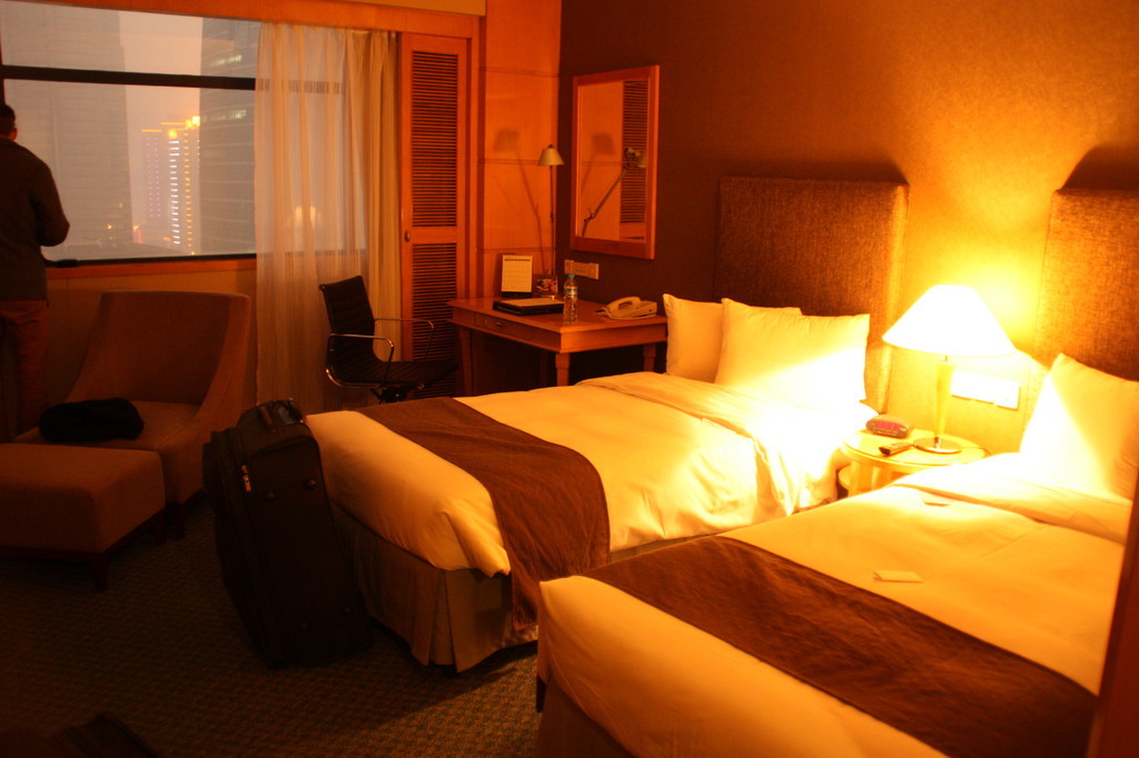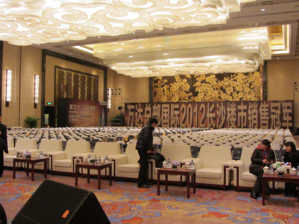 Ein Blick auf die Karte verrät uns, dass Changchun und unsere heutige Tourneestation Changsha alles andere als Nachbarstädte sind. Luftlinie messen wir etwa 2000 Kilometer, damit liegen die Städte weiter voneinander entfernt als Hannover und Moskau. Südchina ruft also und wir hoffen nach den Erfahrungen vom Vortag auf mildere Temperaturen! Doch vorher wartet naturgemäß noch eine lange Reise auf uns: Morgens um fünf geht es los, und wir fliegen mit einem Zwischenstopp in Peking nach Changsha. Aufgrund der langen Reise fahren wir dann vom Flughafen direkt zum Konzertsaal in einem noblen Hotel. Der chinesische Veranstalter hat hier in typisch chinesischer Manier wirklich wieder alles aufgefahren: Schon am Gepäckband des Flughafens empfangen uns große Werbeplakate für unser Konzert, und zur Begrüßung unseres Publikums spielt im Foyer eine Harfenistin im wallenden Engelskostüm, während die Zuhörer durch ein Spalier von Blumenmädchen den Saal betreten. Kitschig? China!