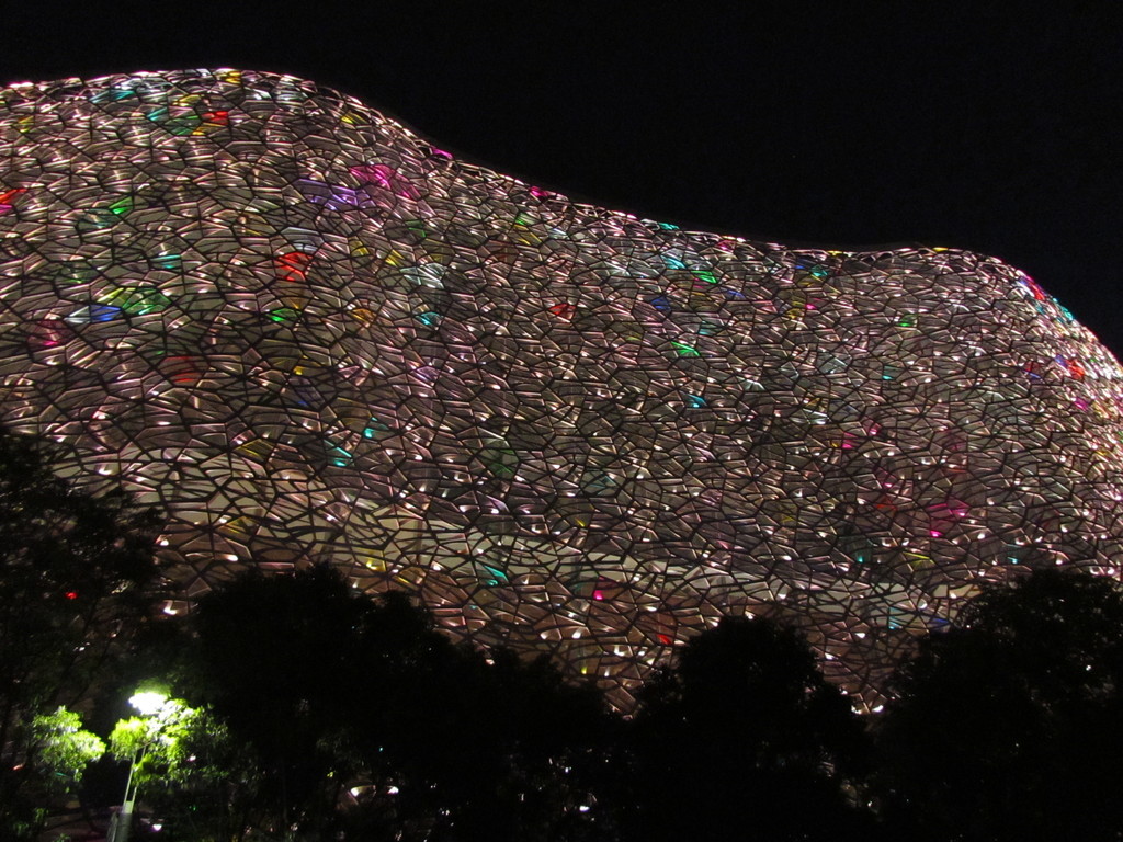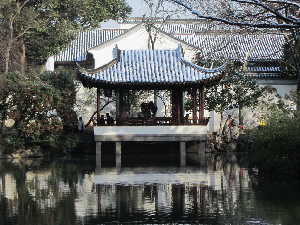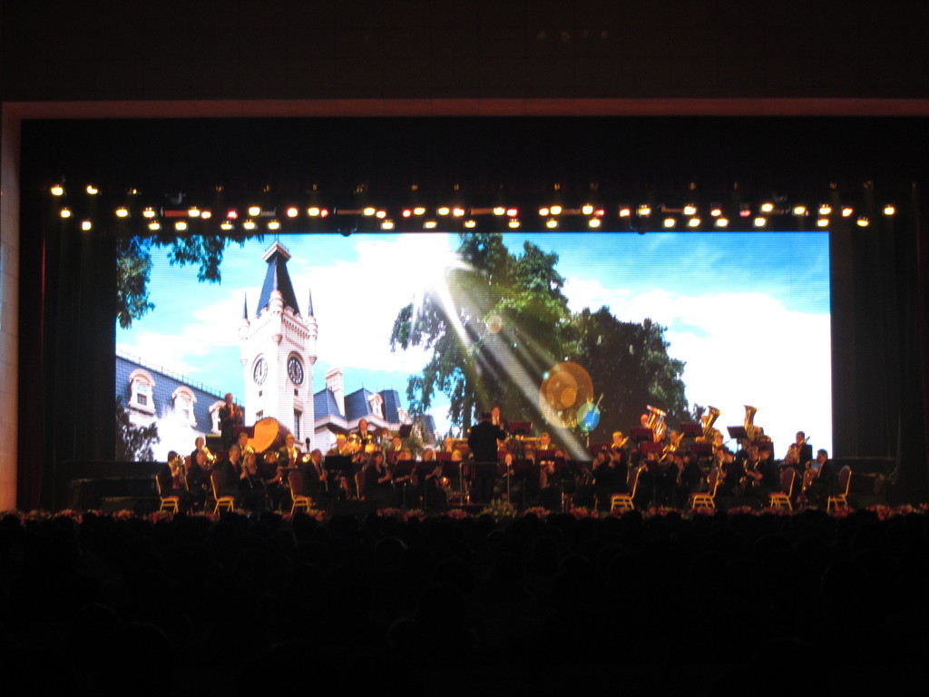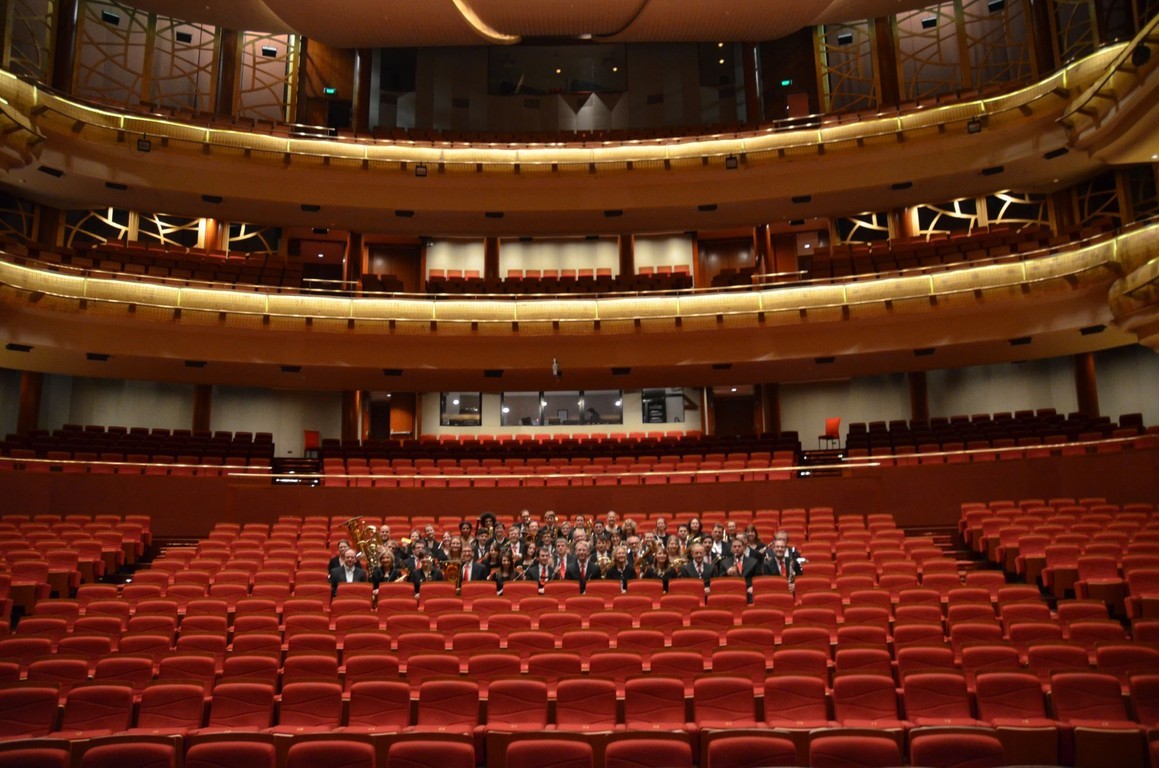 Nun ist es soweit: Wir haben den Durchbruch geschafft und sind auf der ganz großen Bühne angekommen! Dieses Gefühl kommt zumindest auf, als wir mittags das Konzerthaus im Suzhou Culture and Arts Centre besichtigen. Das Konzerthaus gehört zu den zehn besten Konzertsälen der Welt. In der dortigen „Ahnengalerie“ hängen unter anderem weltberühmte Sinfonieorchester aus Berlin, San Francisco, Prag und Shanghai. Gestern war das Staatsballett aus Kiew zu Gast. Keine schlechten Vorgänger also. Doch vorher wird erst einmal noch eine kleine Stadtbesichtigung gemacht, schließlich gilt Suzhou als eine der schönsten Städte Chinas und wird nicht umsonst das „Venedig des Ostens“ genannt. Wir besichtigen einen der vielen Gärten der Stadt und stöbern ein wenig an den Verkaufsständen für die Touristen. Auf einem Parkplatz kommt es leider zu einem kleinen Unfall, als eine unserer Klarinettistinnen von einem unaufmerksamen Autofahrer angefahren wird. Zum Glück ist die chinesische Polizei schnell vor Ort und bald kann leichte Entwarnung gegeben werden, es ist zum Glück nichts Schlimmeres passiert. Erleichtert geht es zum Konzert zurück ins ausverkaufte Culture and Arts Centre, das am Abend spektakulär illuminiert wird und so ein wenig an die Allianz Arena in München erinnert.